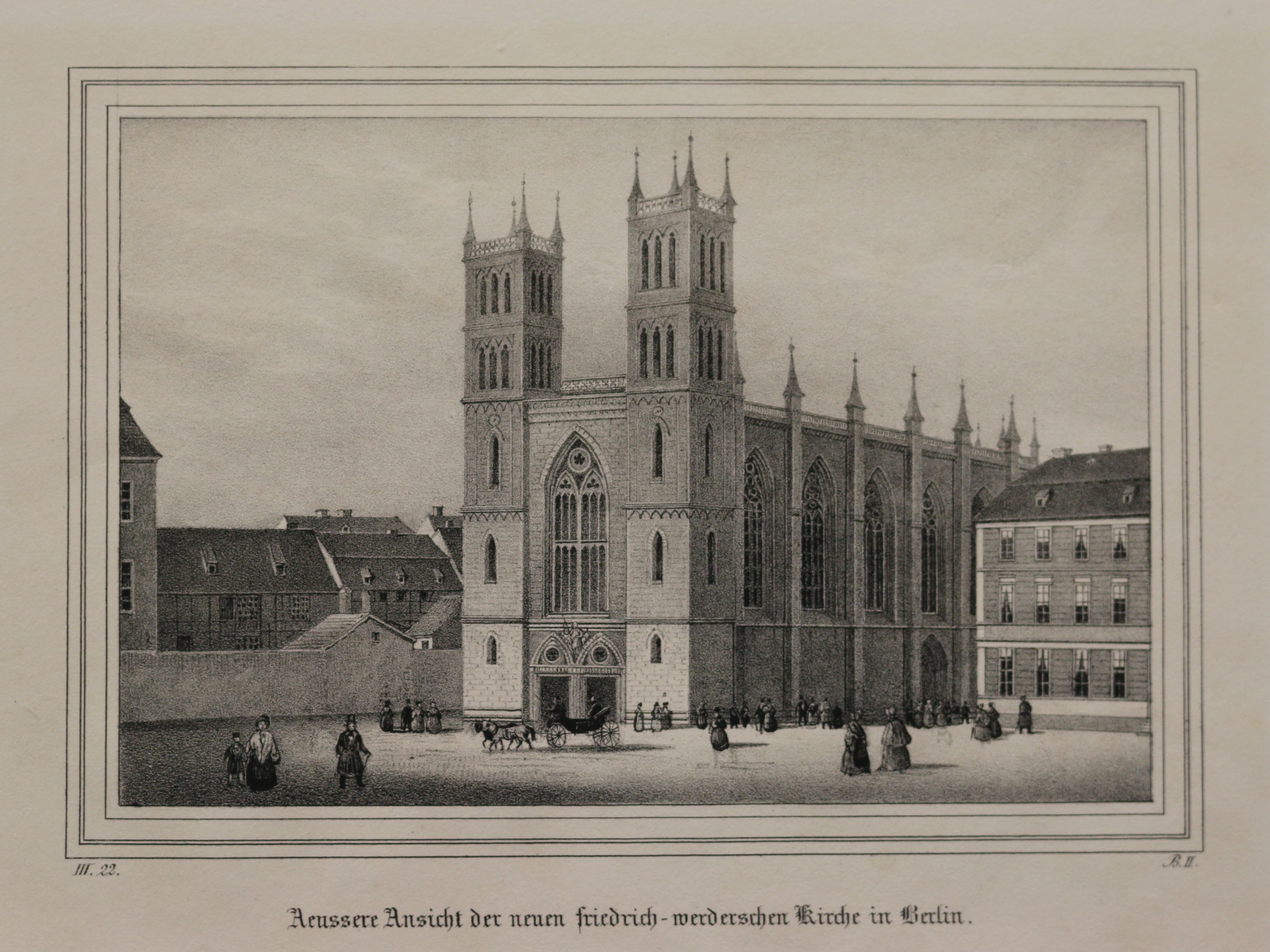Berlin: Werdersche Kirche: Aeussere Ansicht der neuen friedrich-werderischen Kirche in Berlin. Lithografie aus Borussia, 1840 14 x 20,2 cm. Passepartout: 30 x 40 cm. Gut erhalten.