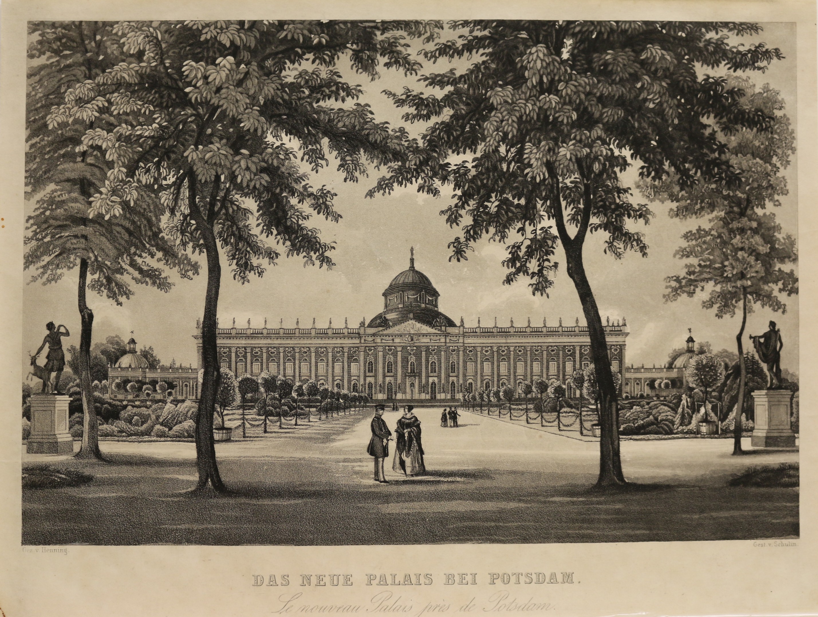 Potsdam: Neues Palais: Das neue Palais bei Potsdam. Aquatinta von Schulin nach Henning, um 1855. Blattformat: 23 x 30 cm. Gut erhalten. Berndt, Märkische Ansichten, Nr. 1586.