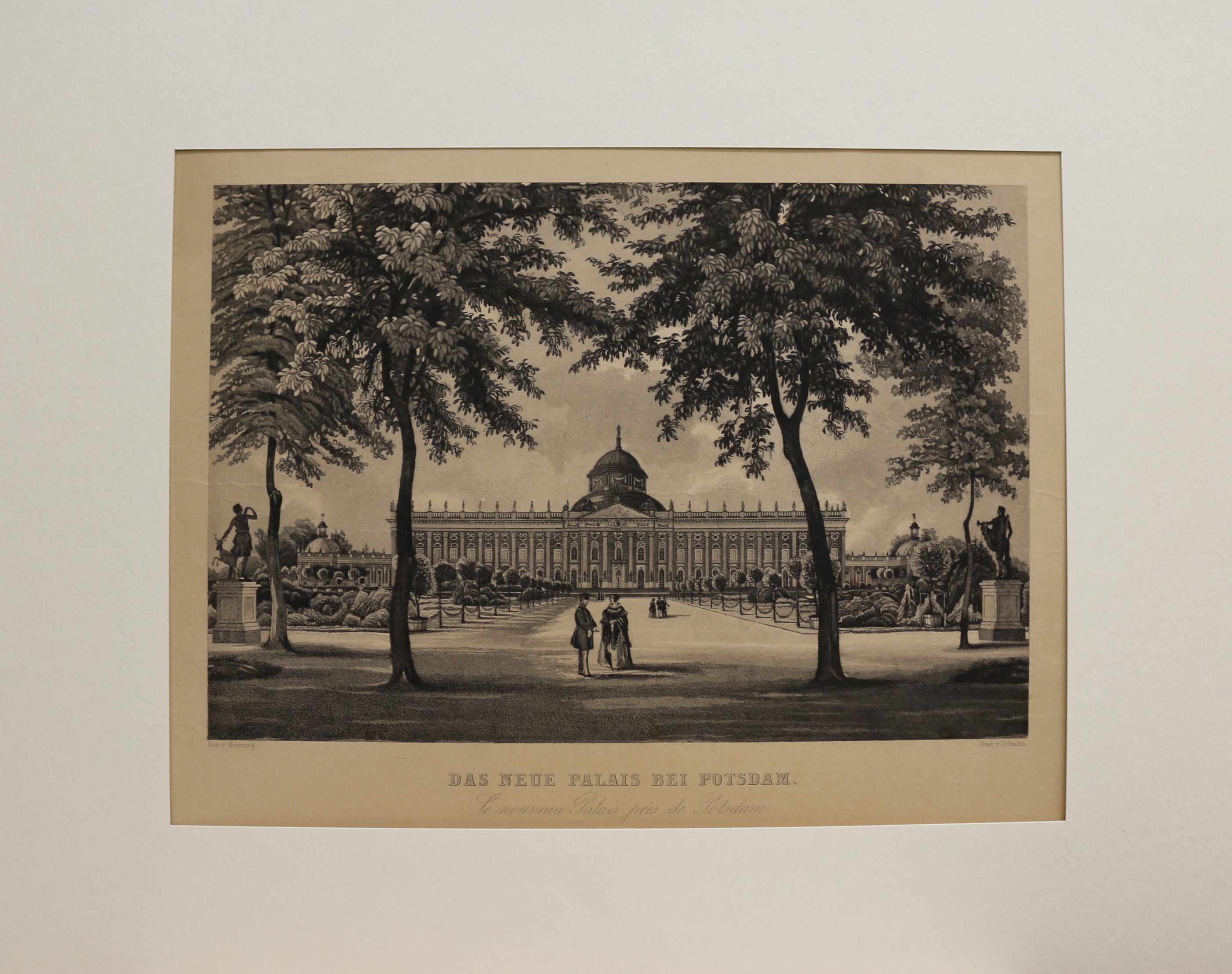 Potsdam: Neues Palais: Das neue Palais bei Potsdam. Aquatinta von Schulin nach Henning, um 1855. 19,2 x 28,4 cm. Passepartout: 30 x 40 cm. Gut erhalten. Berndt, Märkische Ansichten, Nr. 1586.