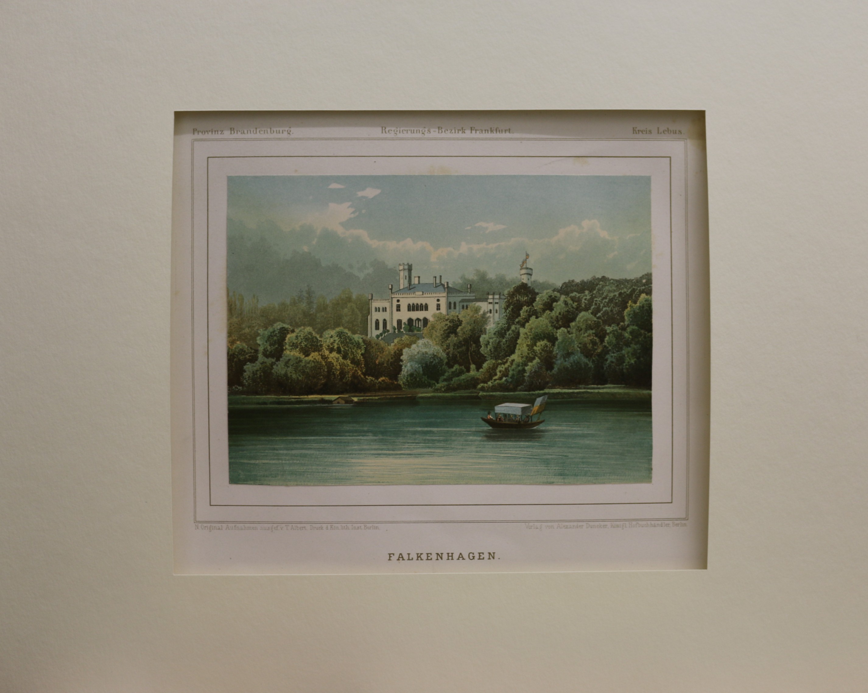 Falkenhagen: Falkenhagen. Farblithographie im Verlag Alexander Duncker erschienen, um 1865. 14,5 x 20 cm. Passepartout: 35 x 45 cm. Oben wenige Stockflecken, sonst gut erhalten.