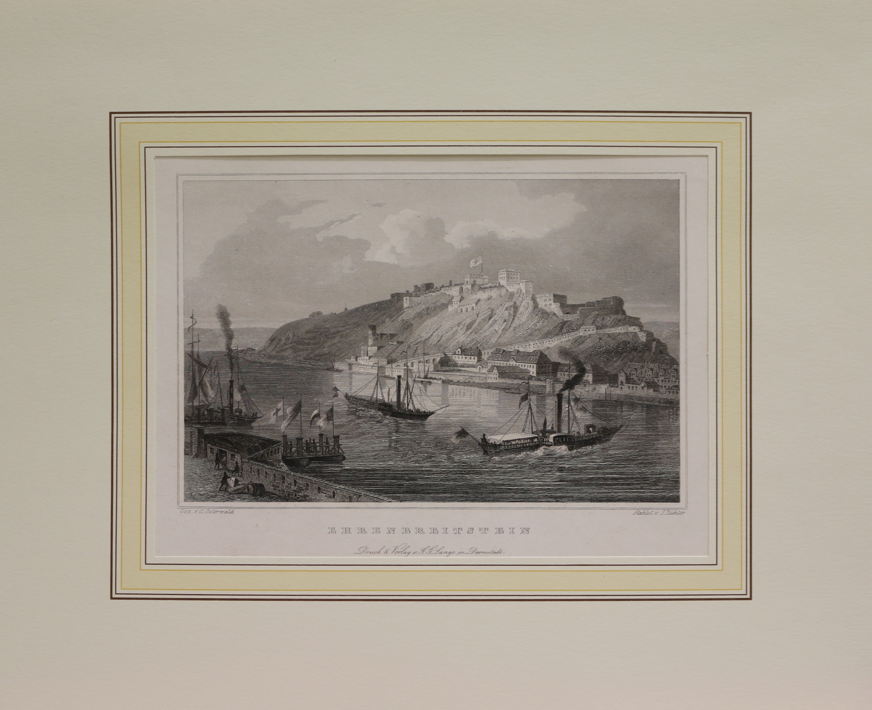 Ehrenbreitstein: Ehrenbreitstein. Stahlstich von Richter nach Osterwald, 1842. 10,5 x 16,4 cm. Passepartout: 24 x 30 cm. Prima erhalten.