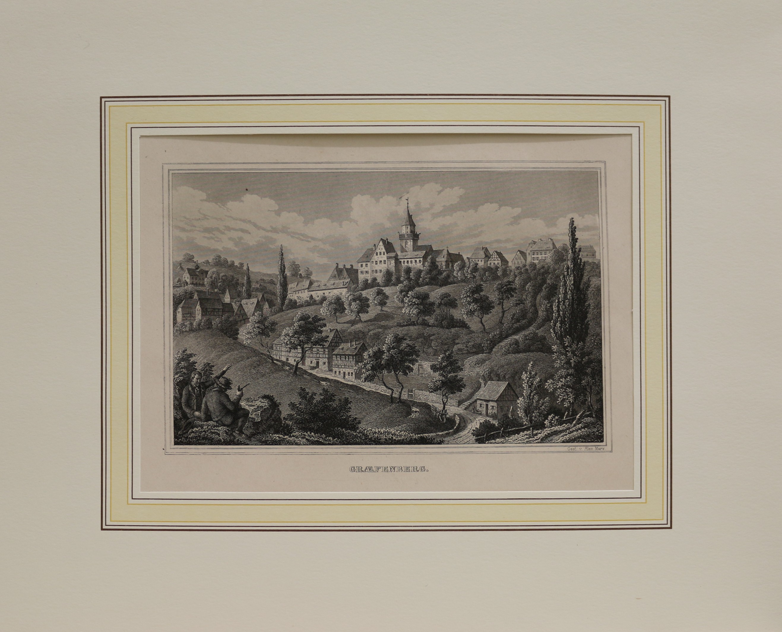 Gräfenberg: Graefenberg. Stahlstich von Alex Marx, 1879. 10,5 x 16,4 cm. Passepartout: 24 x 30 cm. Prima erhalten.