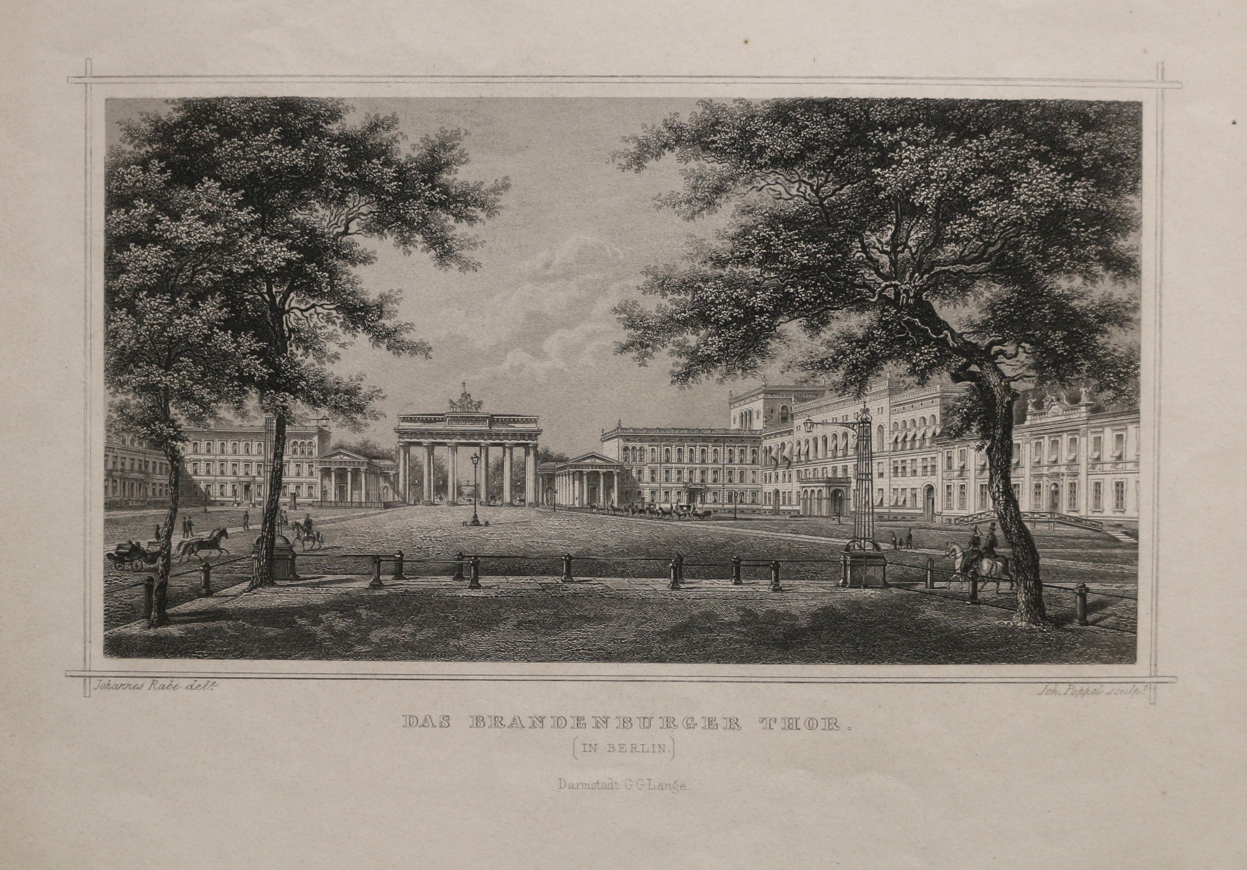 Brandenburger Tor: Pariser Platz: Liebermann Haus: Das Brandenburger Thor. In Berlin. Stahlstich von Poppel nach Rabe, 1854. 10 x 17,5 cm inkl Bordüre. Gut erhalten. G. Ernst – J. Rabe, Nr. 5. – 1. Zustand.
