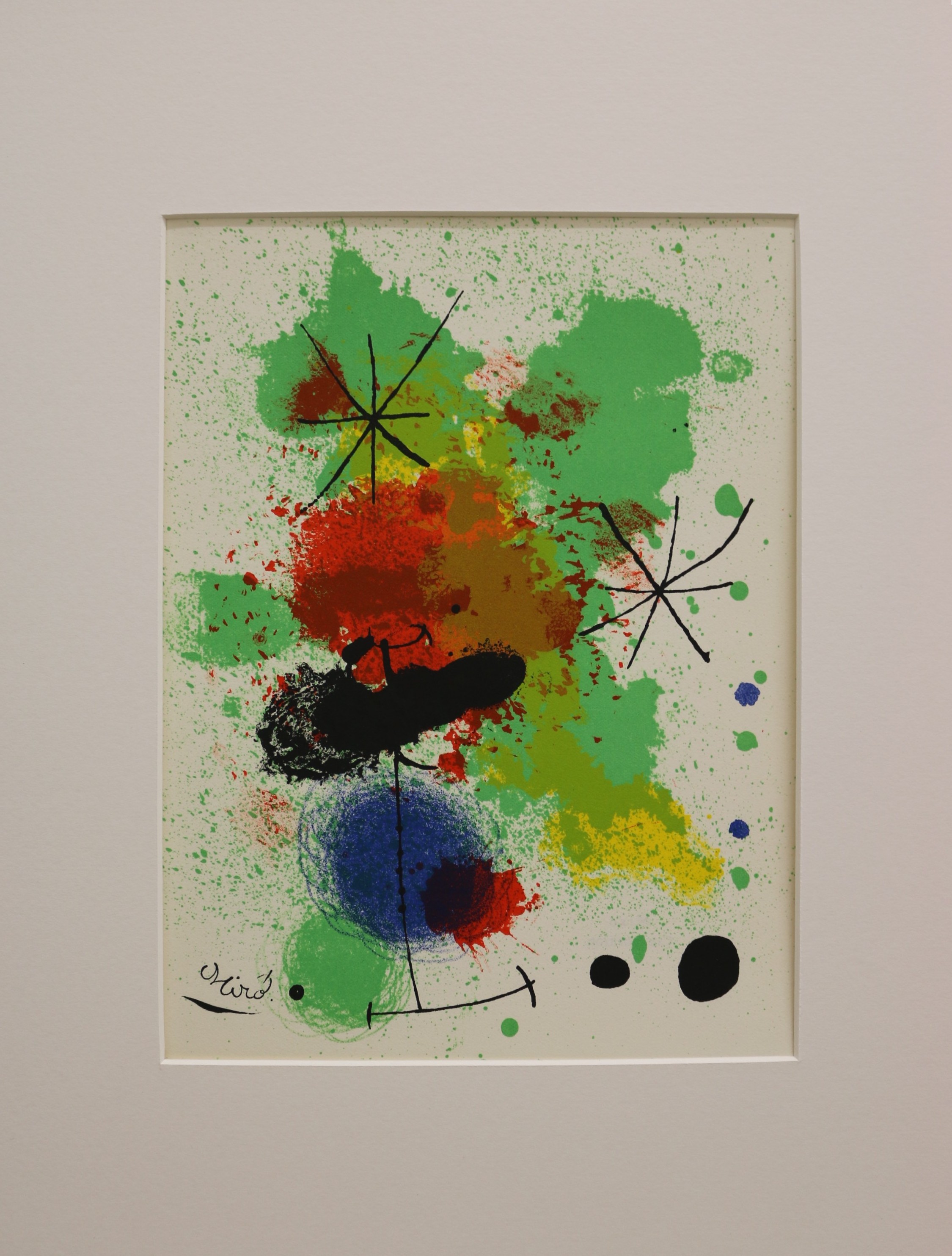 Miró: Composition: Joan Miró. Composition. Original Farblithografie von Joan Miró, gedruckt bei Mourlot in Paris, 1965 erschienen. Auflage für die Redfern Gallery in London mit 1150 Exemplaren. 1000 Stück auf Vélin d´Arches & 150 Stück auf Vélin d´Rives, vorbehalten für die Künstler, Freunde und Mitarbeiter. Passepartout: 40 x 30 cm. Blattformat: 25,5 x 19 cm. Prima erhalten.