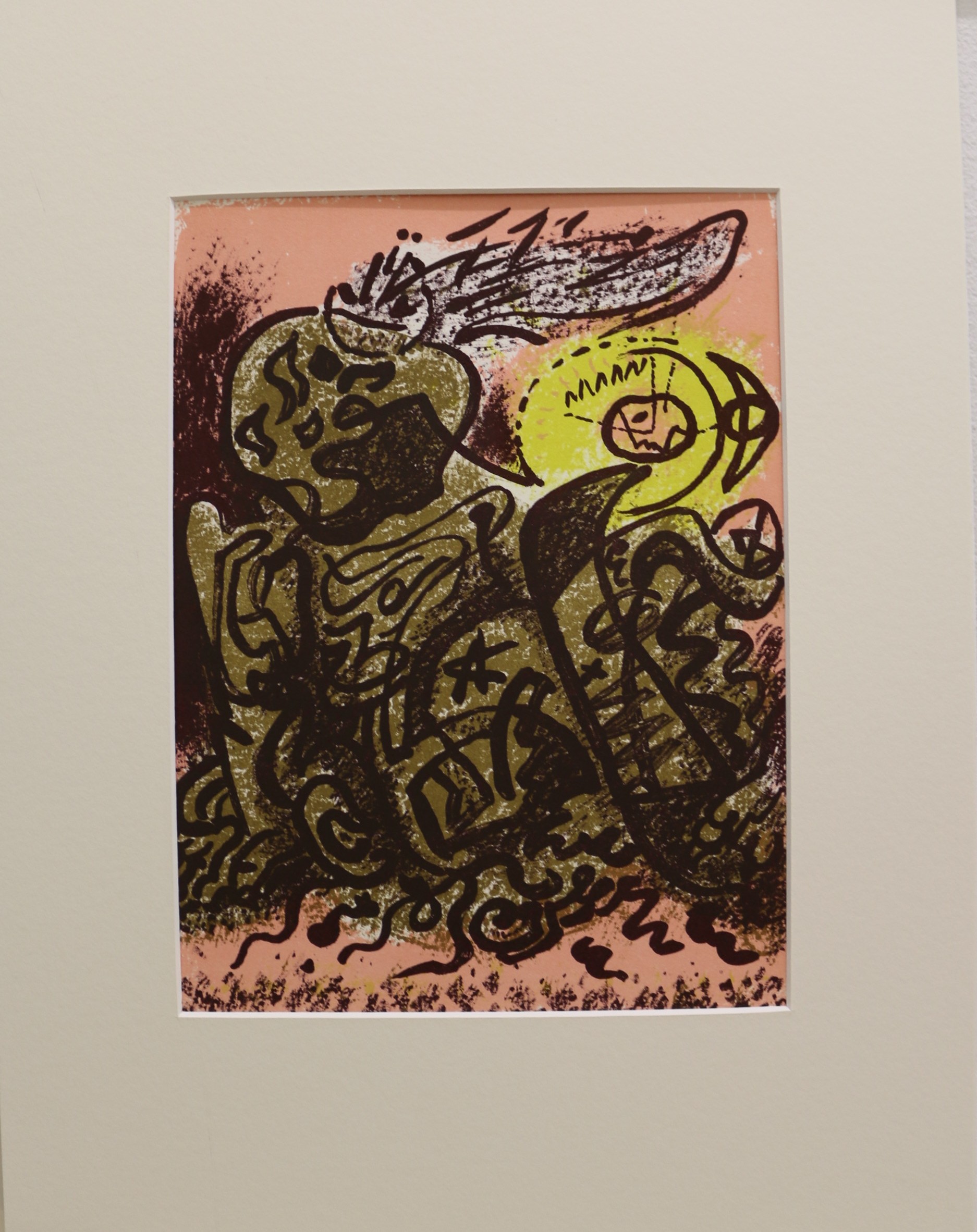 Masson: Caliban: André Masson. Caliban. Original Farblithografie von André Masson, gedruckt bei Mourlot in Paris, 1965 erschienen. Auflage für die Redfern Gallery in London mit 1150 Exemplaren. 1000 Stück auf Vélin d´Arches & 150 Stück auf Vélin d´Rives, vorbehalten für die Künstler, Freunde und Mitarbeiter. Passepartout: 40 x 30 cm. Blattformat: 25,5 x 19 cm. Prima Zustand.