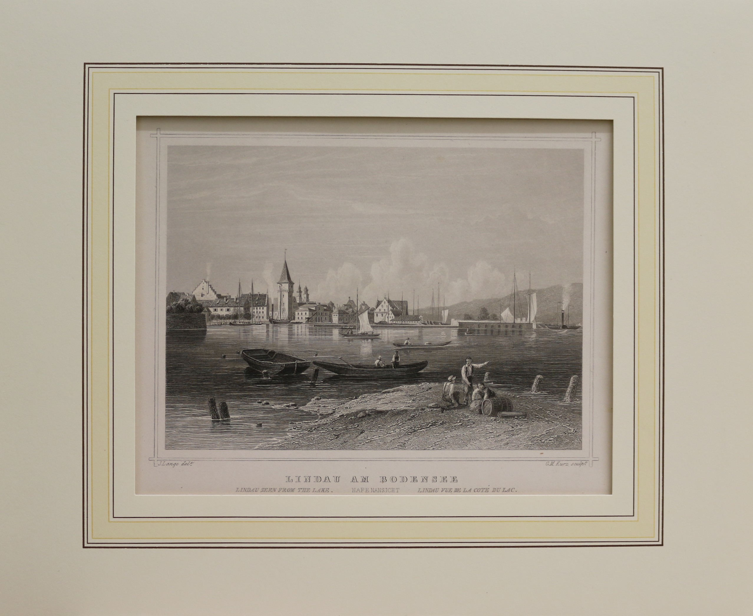 Lindau: Bodensee: Lindau am Bodensee. Stahlstich von Kurz nach Lange, 1853. Auf Chinapapier. 12,2 x 16,6 cm. Passepartout: 24 x 30 cm. Prima erhalten.