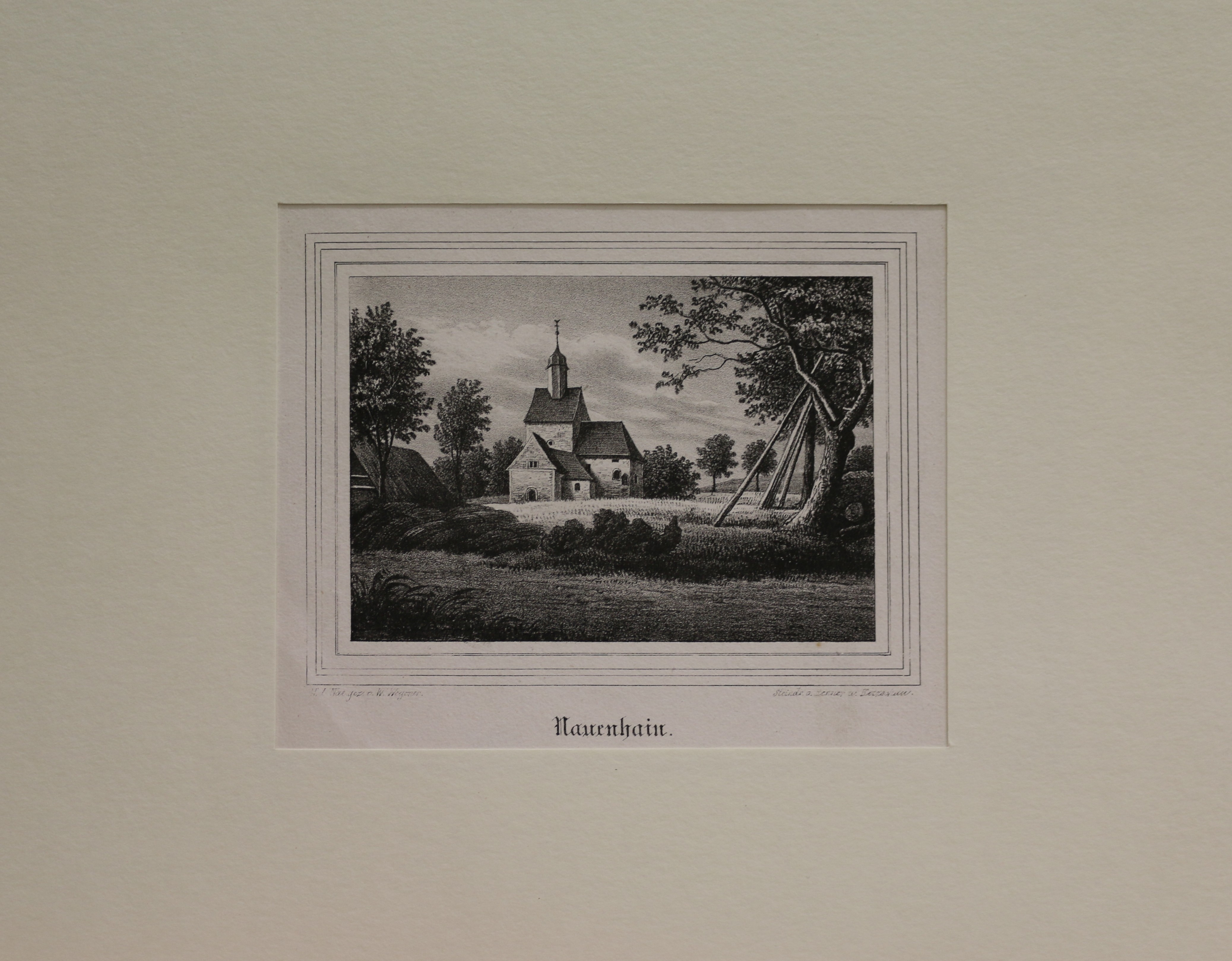 Nauenhain: Geithain: Nauenhain. Lithographie von Renner und Ketzschau nach Wegener, 1840. 10 x 13,8 cm. Passepartout: 24 x 30 cm. Gut erhalten.