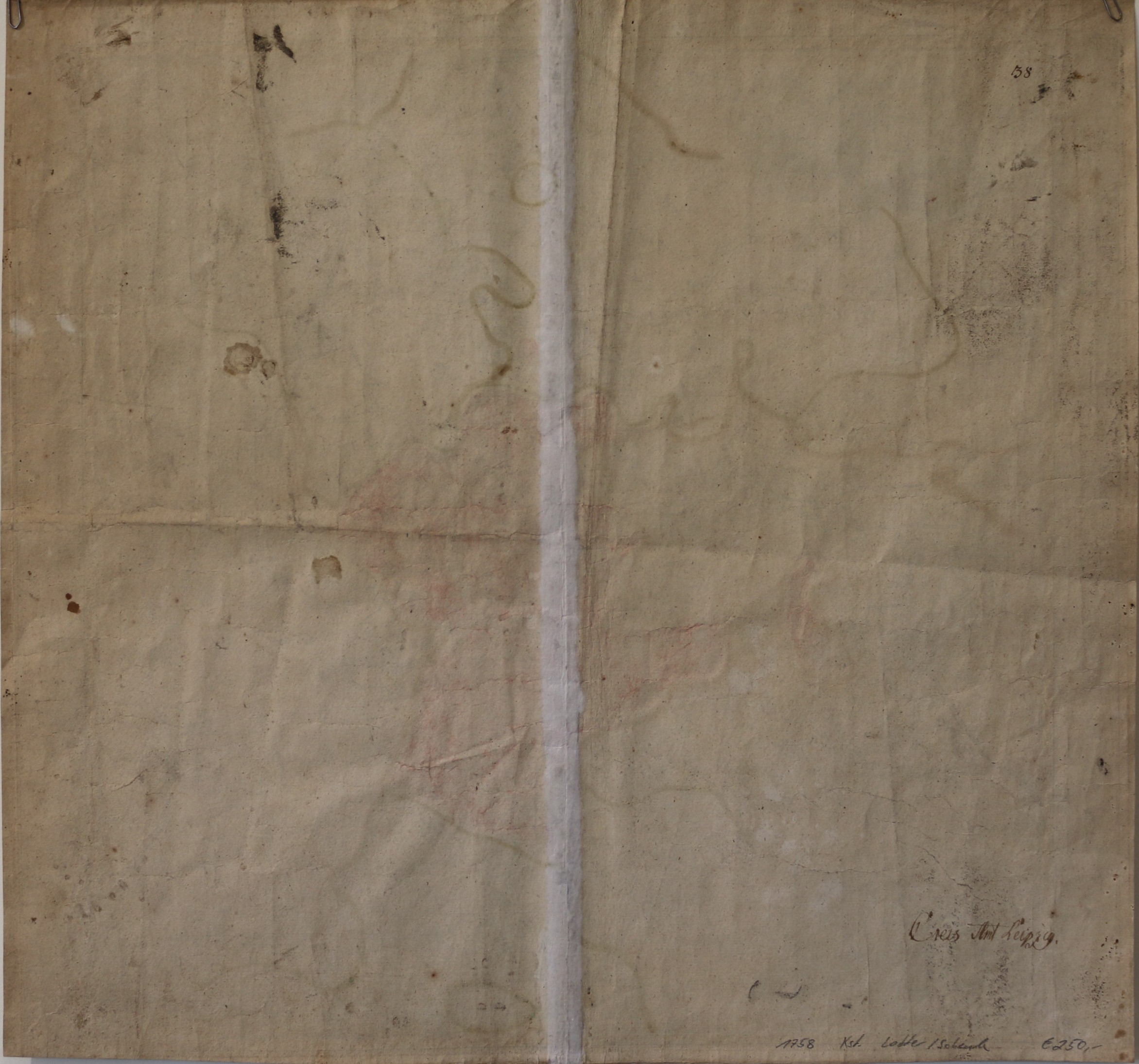 Leipzig: Lotter Tobias. Accurate geographische delineation des Creis Ammtes Leipzig. Kolorierter Kupferstich von Tobias Conrad Lotter für Peter Schenks Atlas Saxonicus Novus, datiert 1758. 49 x 53,2 cm. Blattformat: 52 x 55 cm. Die Mittelfalz wurde restauriert, einige Flecken, sonst gut erhalten.