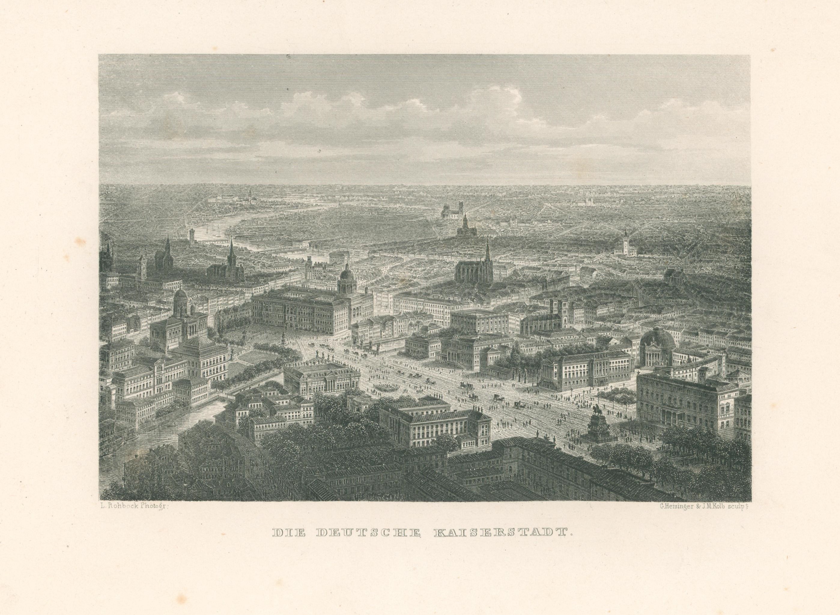 Berlin: Gesamtansicht: Unter den Linden: Die Deutsche Kaiserstadt. Stahlstich von Heisinger und Kolb nach Rohbock, um 1890. 12,5 x 18,4 cm. Gut erhalten.