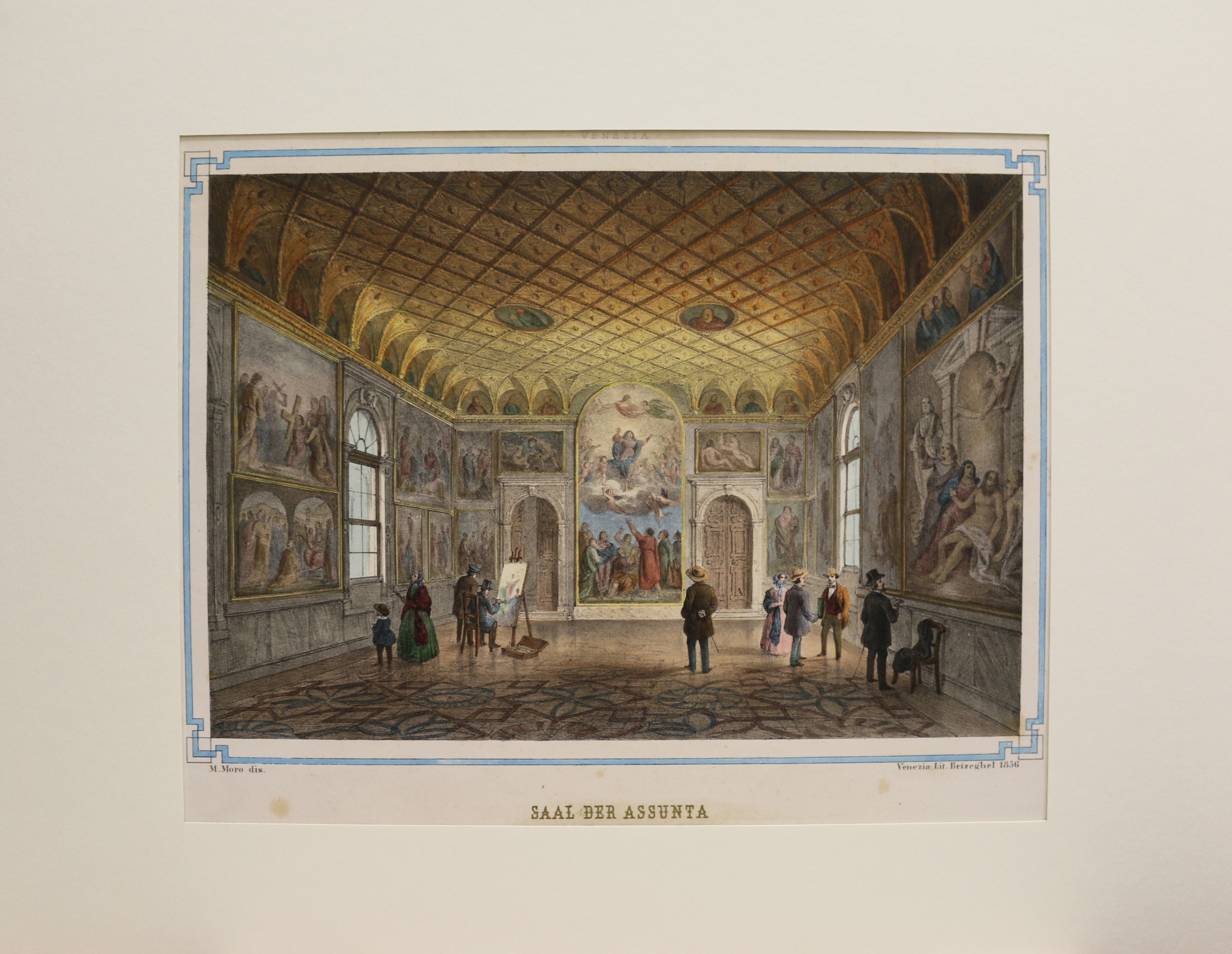 Venedig: Venezia: Saal der Assunta. altkolorierte Lithographie nach Marco Moro bei G. Brizeghel, 1856. 21 x 29,7 cm inkl. Bordüre. Passepartout: 35 x 45 cm. Einige Stockflecken, sonst gut erhalten.