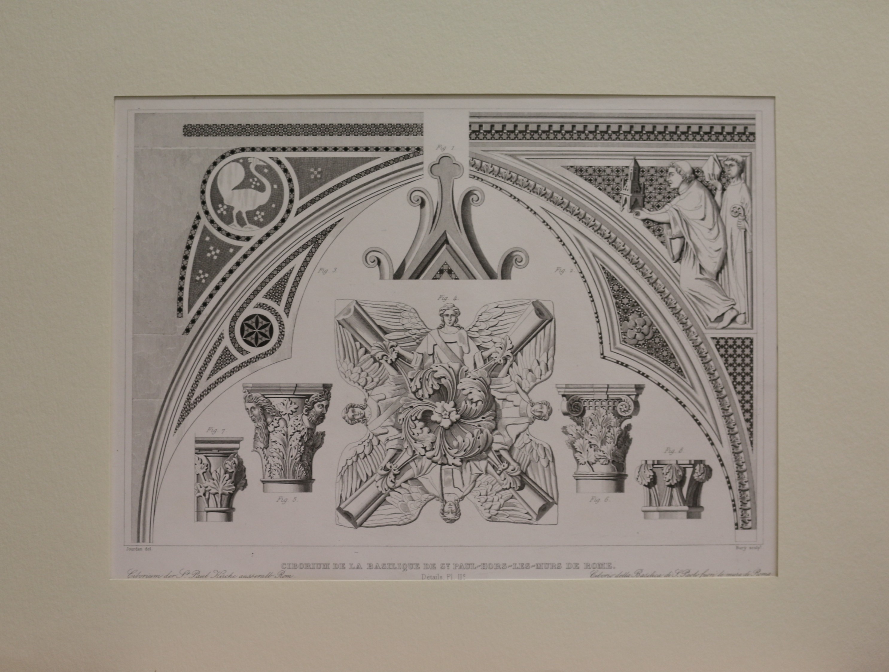 Rom: Architektur: Ciborium de la Basilique de St. Paul-Hors-Les-Murs de Rome. Stahlstich von Bury nach Jourdan, 1852. 18,3 x 26,5 cm. Passepartout: 30 x 40 cm. Gut erhalten.