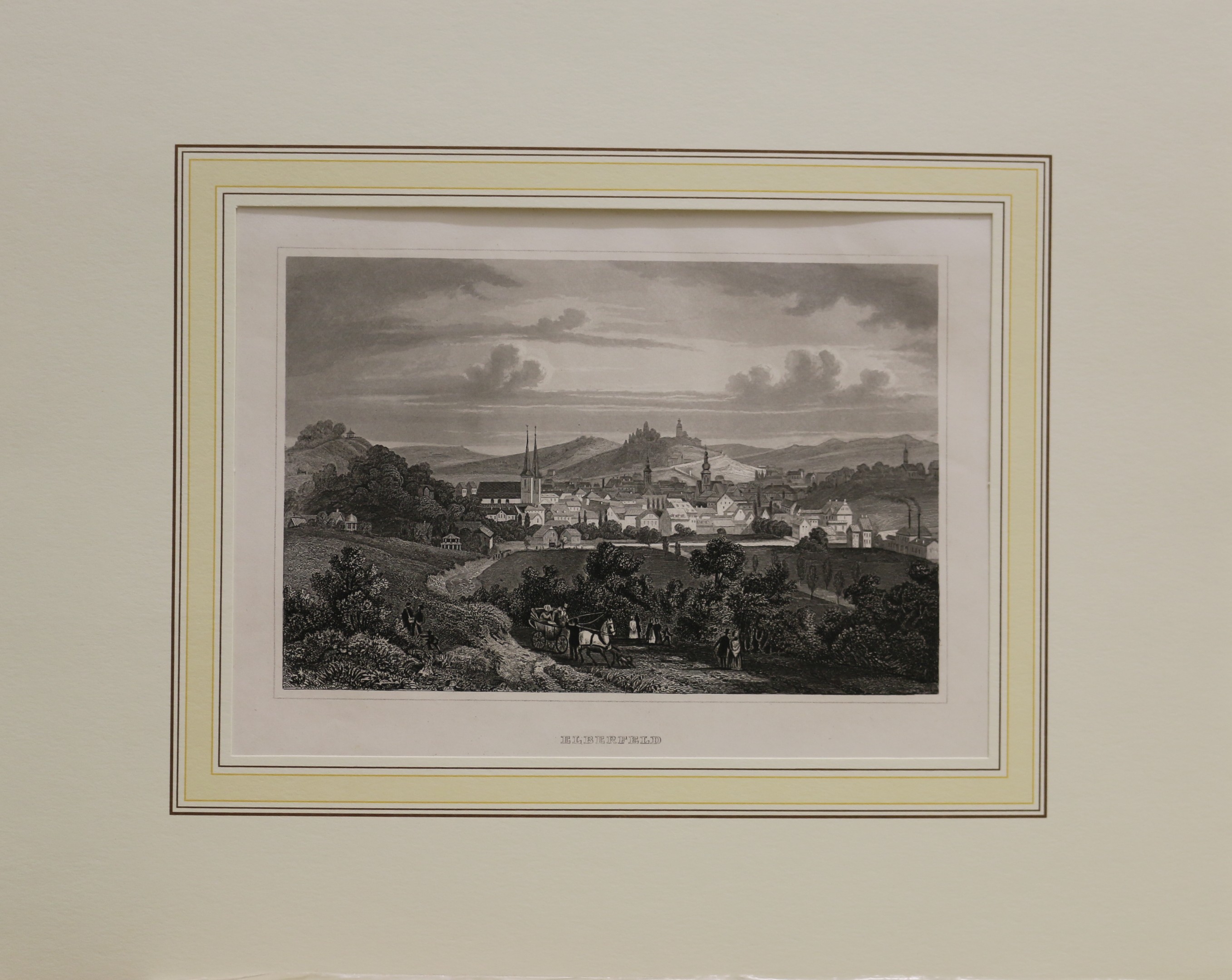 Elberfeld: Wuppertal: Elberfeld. Stahlstich bei Joseph Meyer, 1859. 10,5 x 15,6 cm. Passepartout: 24 x 30 cm. Gut erhalten.