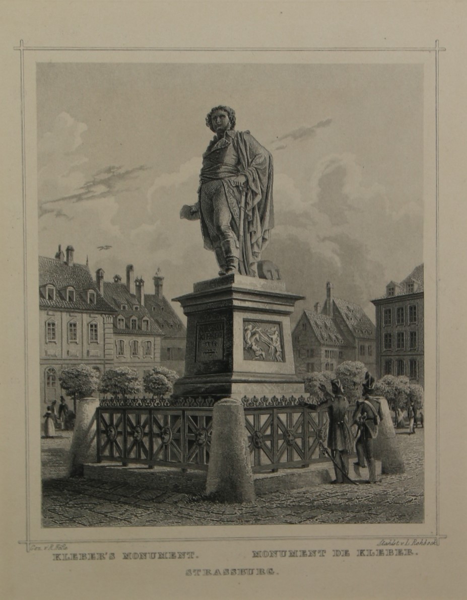 Frankreich: Straßburg: Kléber: „Klebers Monument“ „Monument de Kleber“ Strassburg. Stahlstich von Rohbock nach Höfle auf Chinapapier, 1853. 13,7 x 11,4cm. Inkl. Passepartout 30 x 24 cm. Gut erhalten.