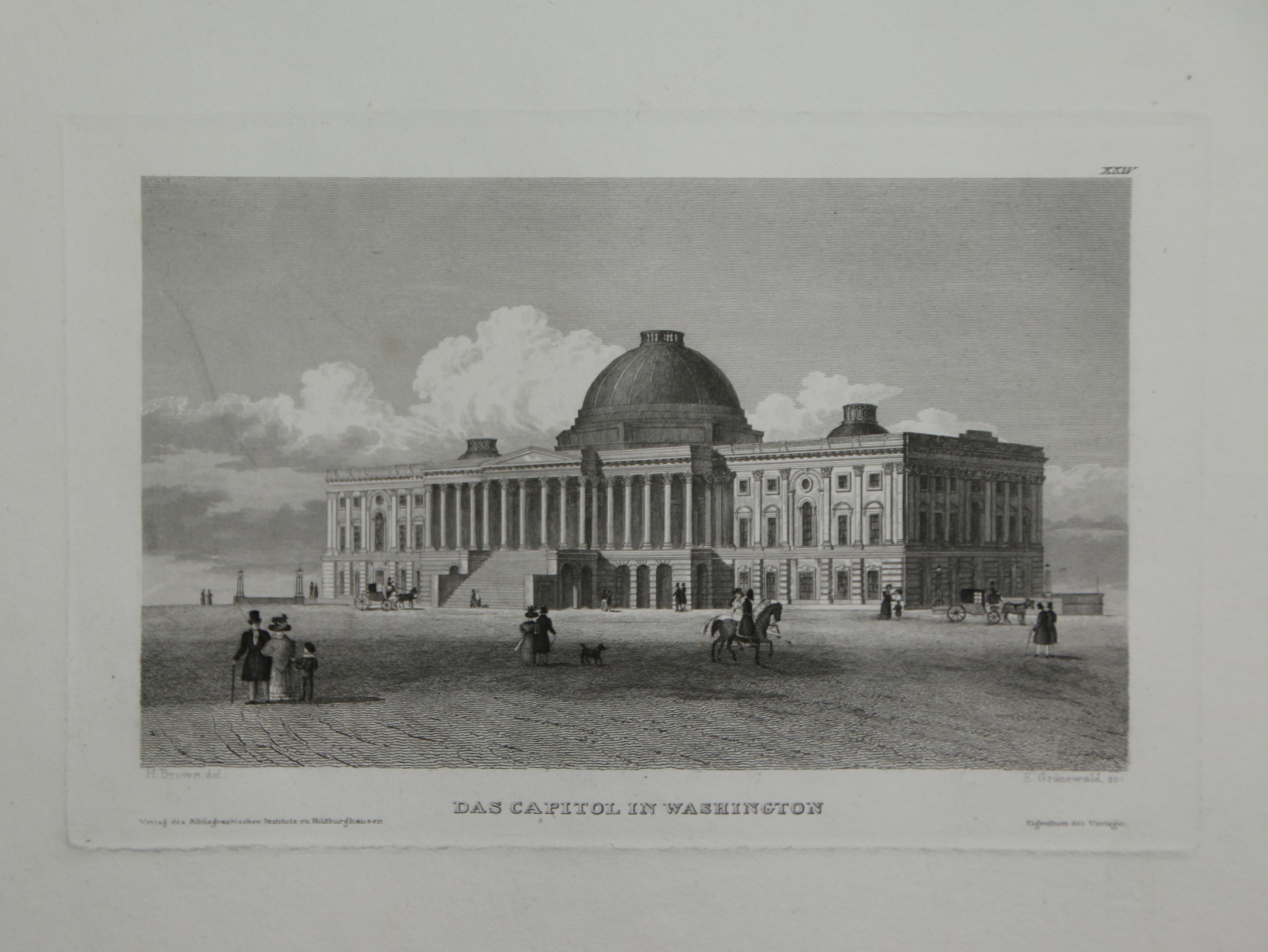 USA: Washington: Kapitol: „Das Capitol in Washington“ Stahlstich von Grünewald nach Brown bei J. Meyer, 1833. 9,4 x 15,7cm. Gut erhalten.